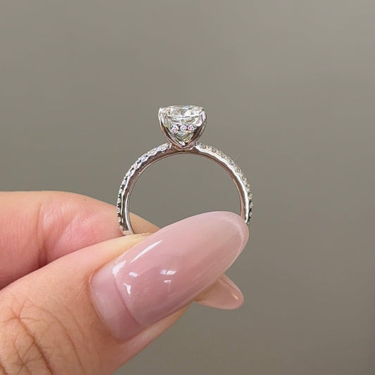 2.0 CT Cushion Hidden Halo & Pave Lab Grown Diamond Engagement Ring