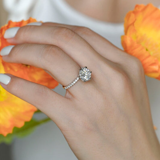 3.0 CT Round Pave Lab-Grown Diamond Engagement Ring