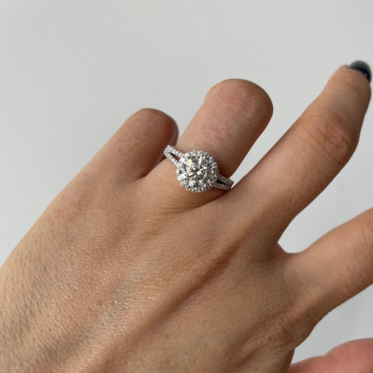 1.5 CT Round Halo & Pave Split Shank Lab-Grown Diamond Engagement Ring