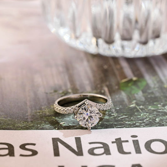 2.0 CT Round Curved Pave Lab-Grown Diamond Engagement Ring