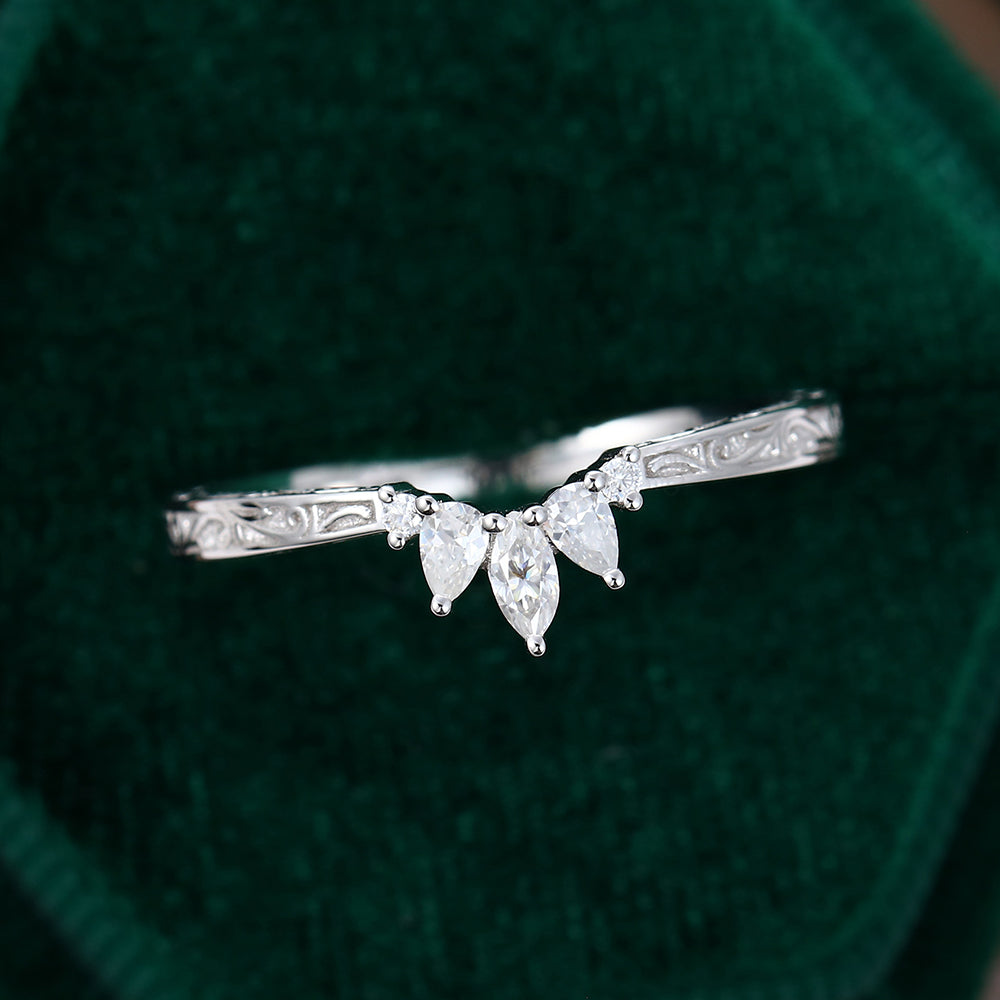 0.19 CT Round, Marquise & Pear Moissanite Curved Wedding Band