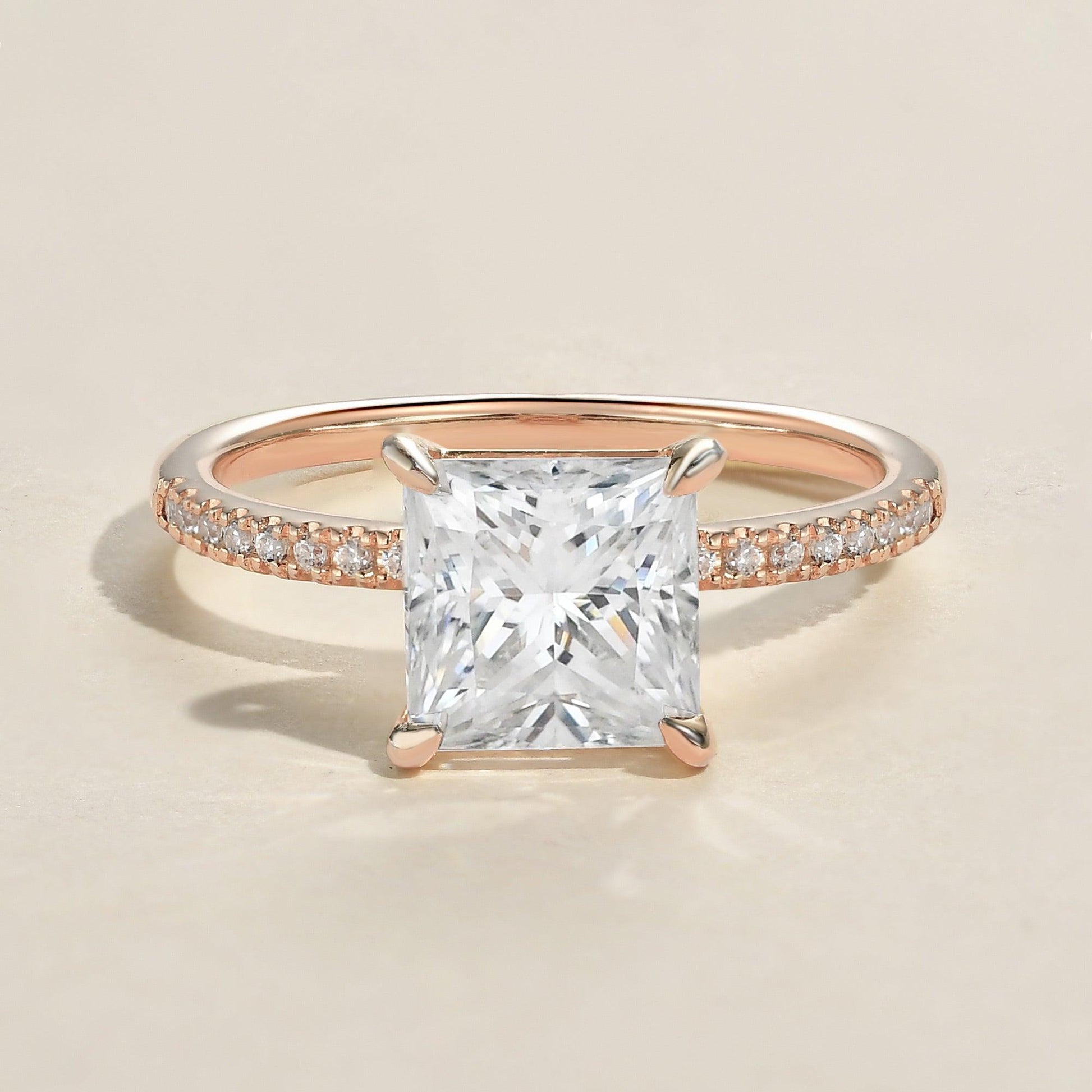 1.18 CT Princess Cut Solitaire Pave Moissanite Engagement Ring