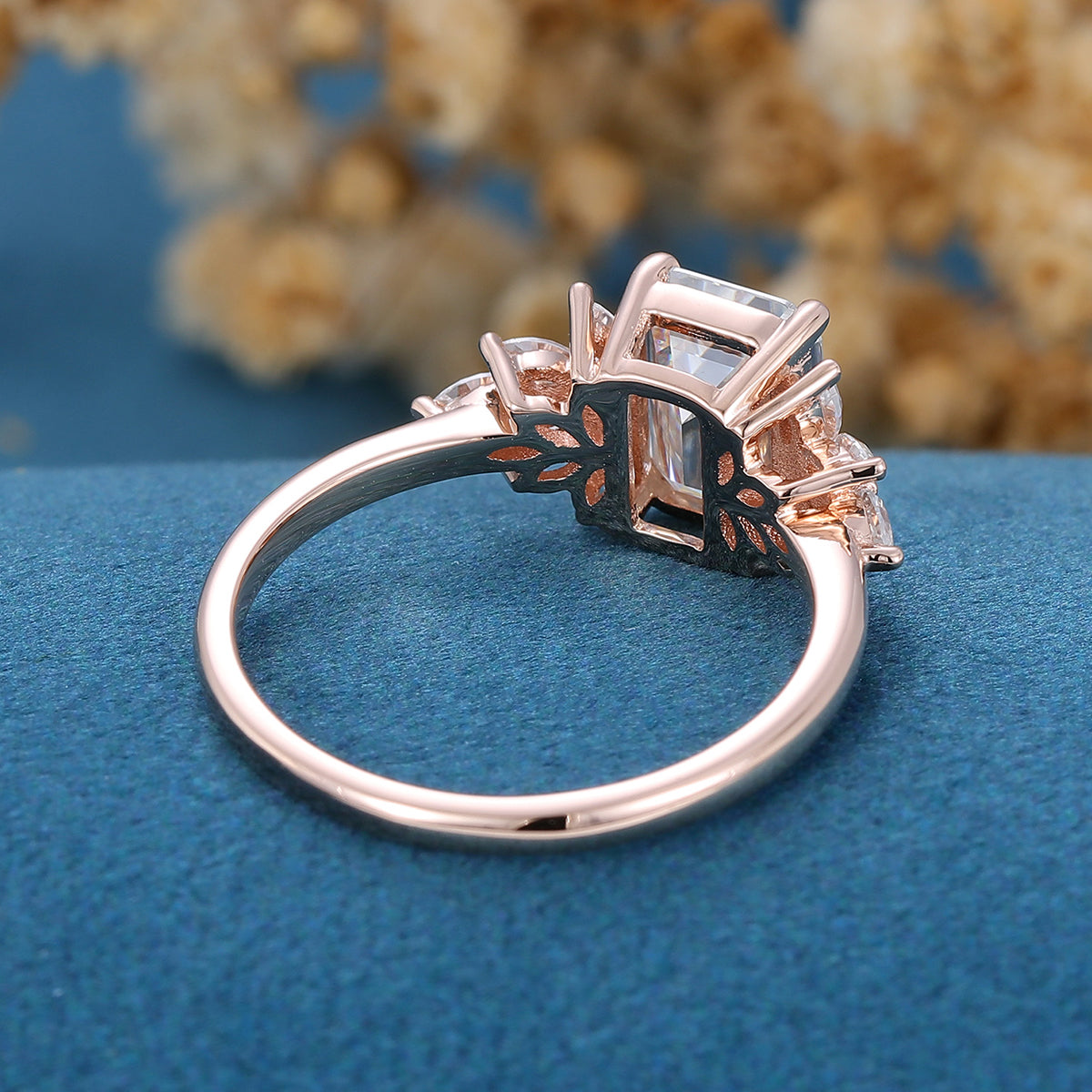 1.60 CT Emerald Shaped Moissanite Cluster Engagement Ring