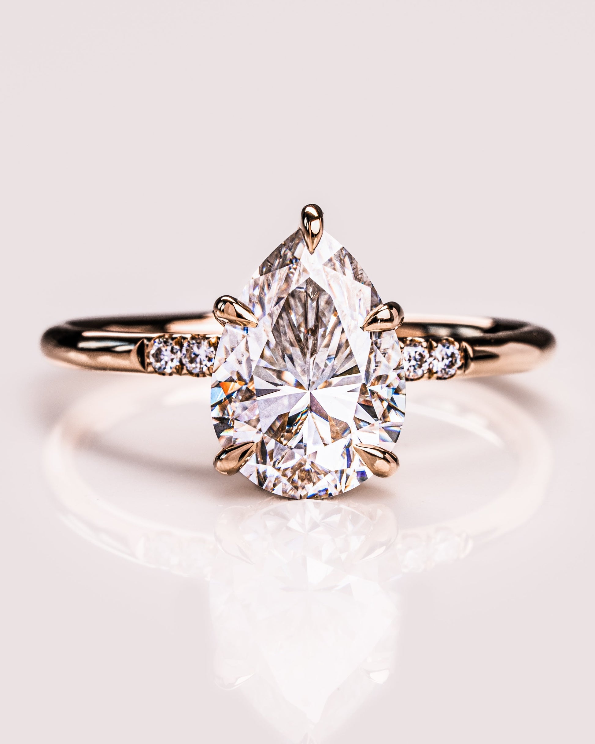 1.93 CT Pear Cut Solitaire Moissanite Engagement Ring With Hidden Halo Setting