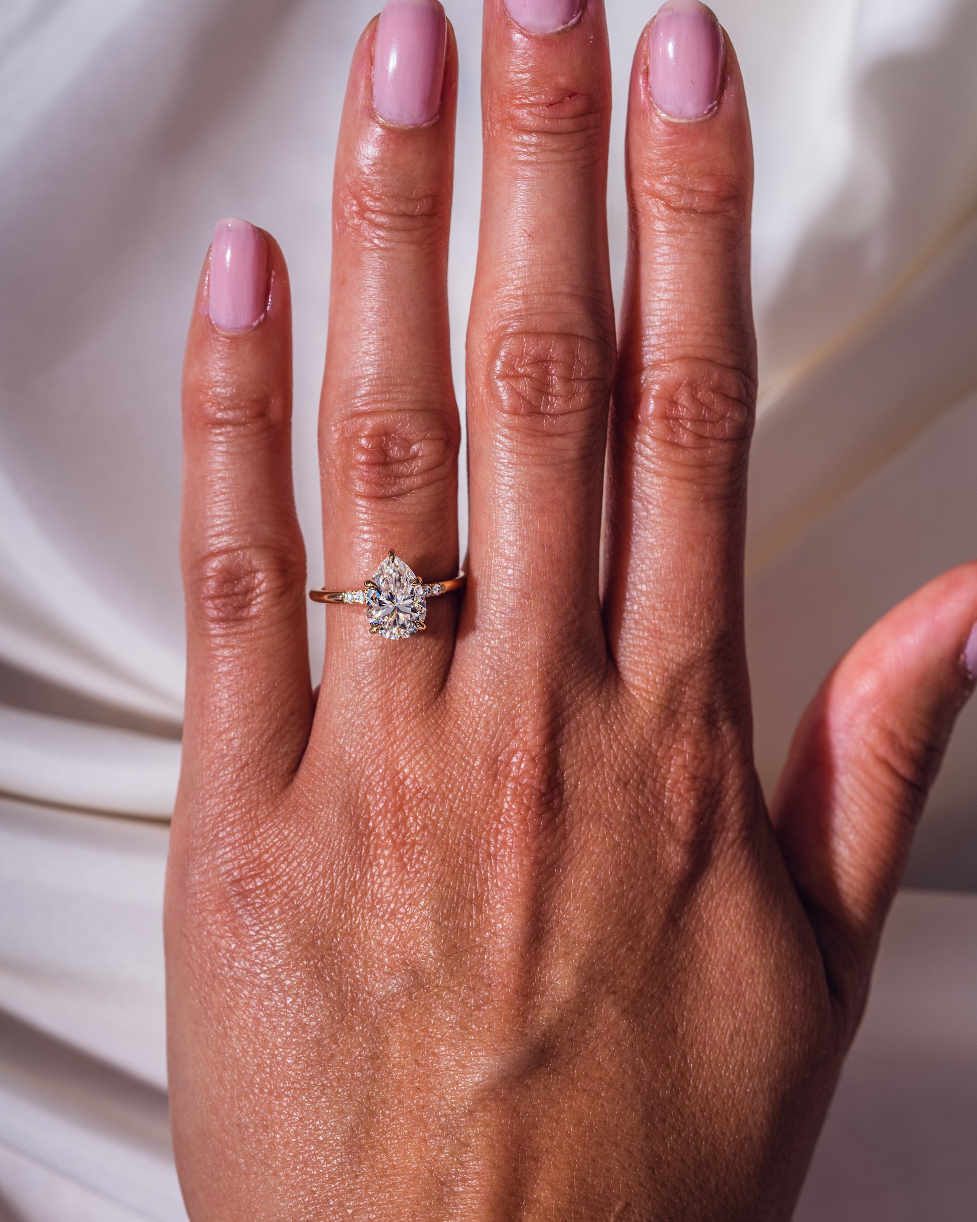✦ The Ring Shown in the Picture Holds a Beautiful 1.93 CT Pear Cut Moissanite.