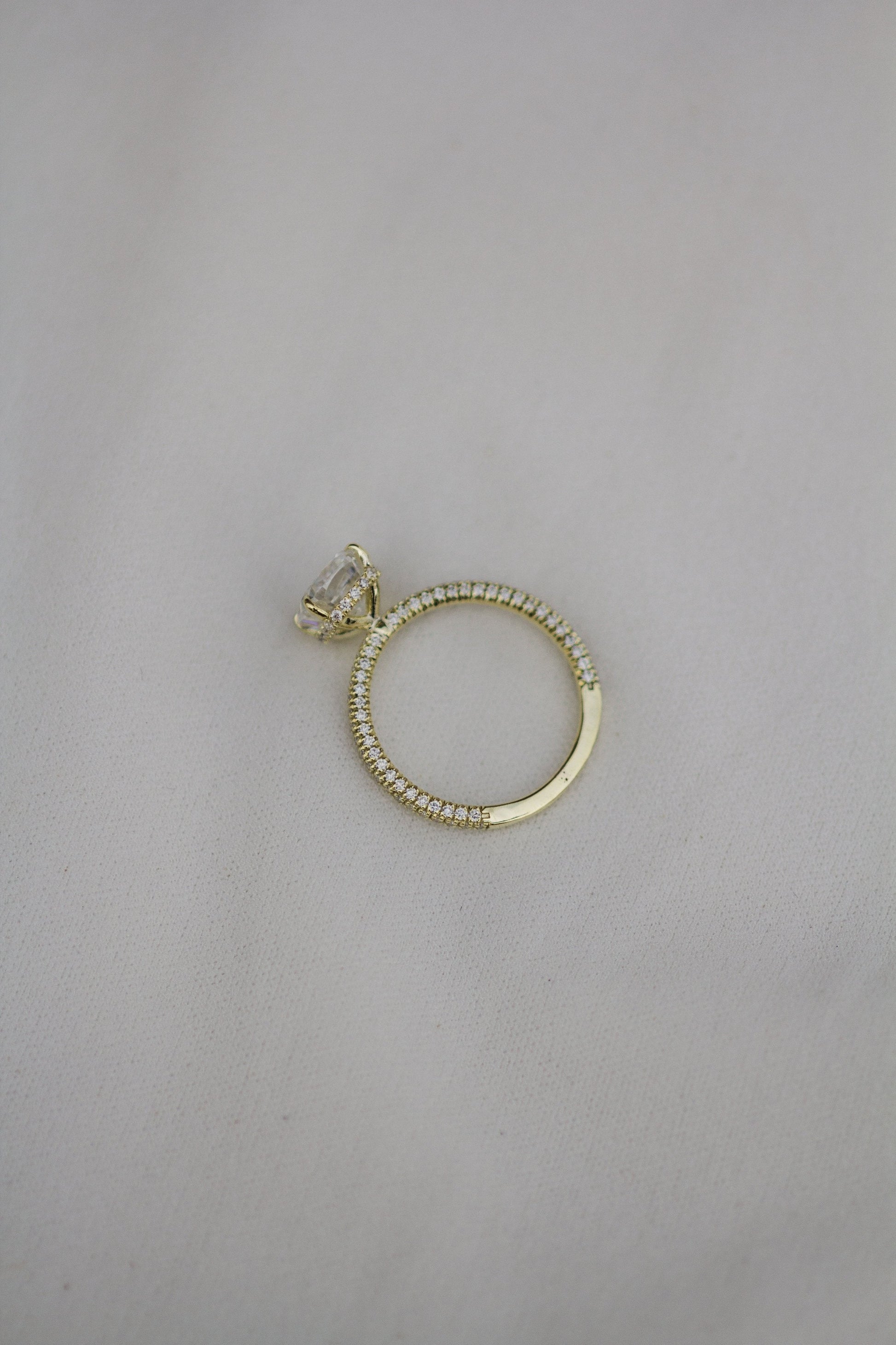 2.0 CT Cushion Hidden Halo & Pave Moissanite Engagement Ring