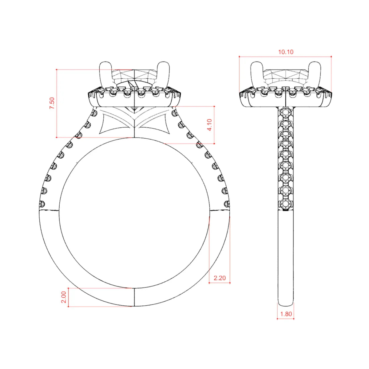 2.15 CT Cushion Cut Halo Moissanite Engagement Ring