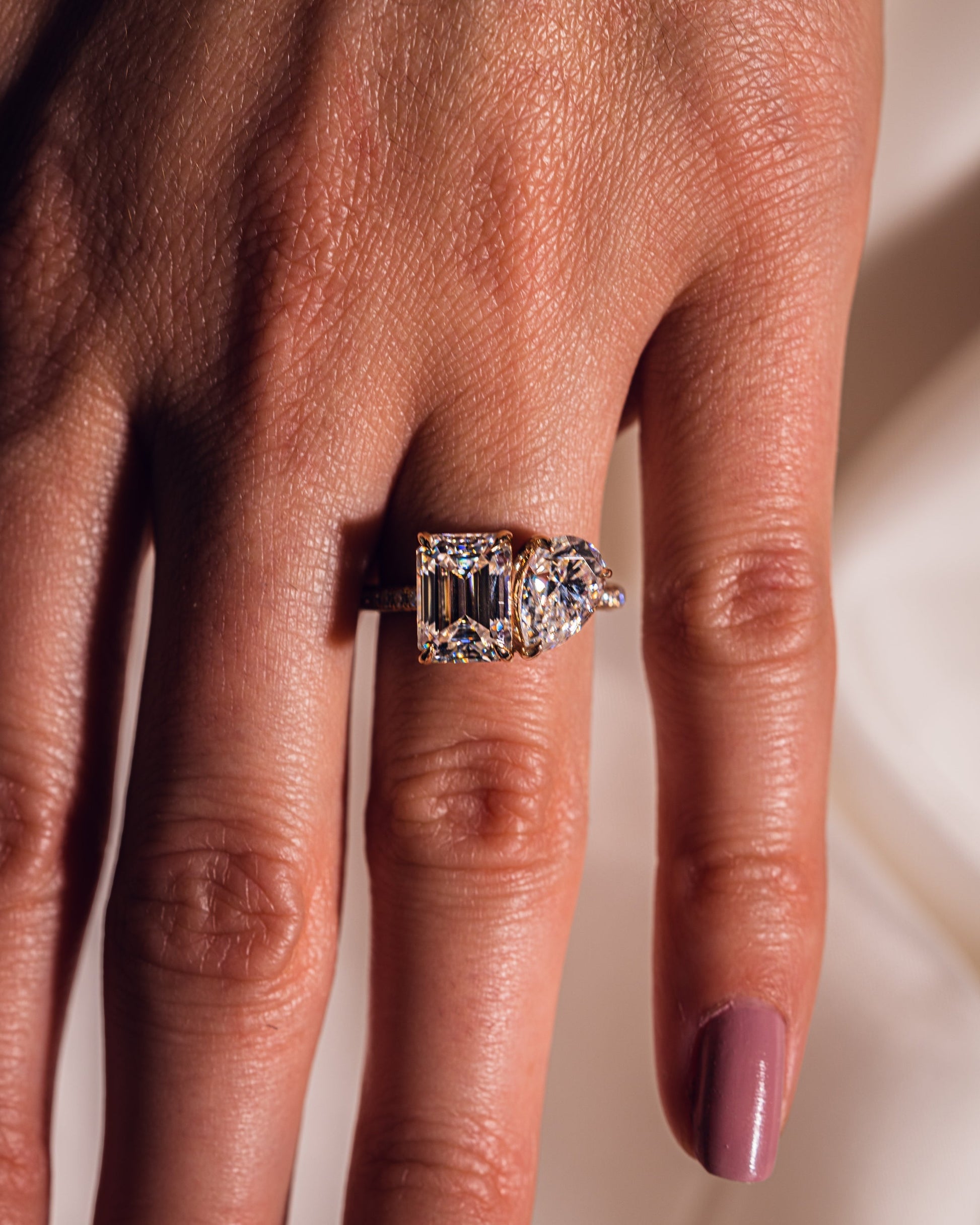 ✦ The Ring Shown in the Picture Holds a Beautiful 2.25 CT Emerald & Pear Cut Moissanite.
