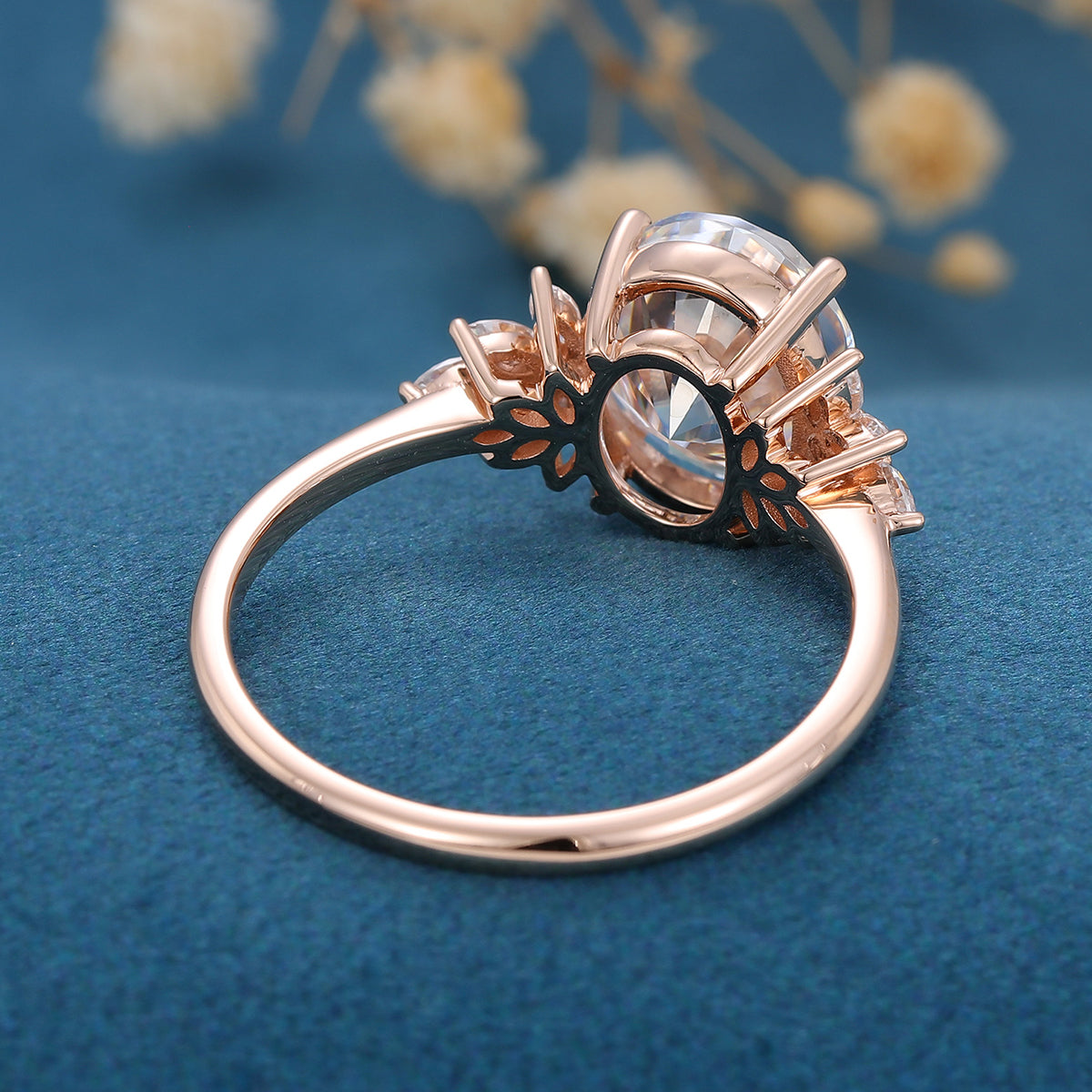 3.74 CT Oval Shaped Moissanite Cluster Engagement Ring