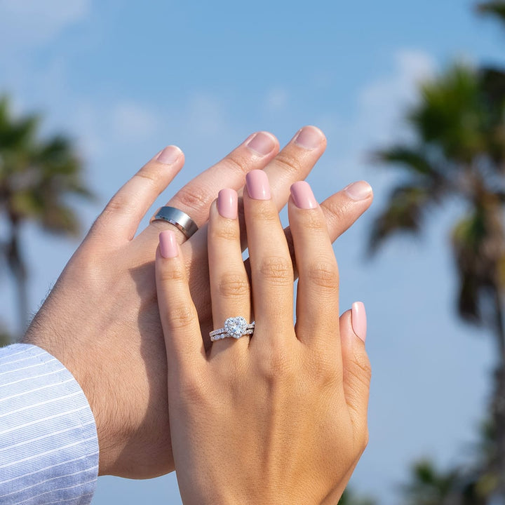 Moissanite is completely suitable for everyday wear, and their color grade and sparkle are made to last. Moissanite is also completely conflict-free and eco-friendly, unlike the majority of diamonds! We believe love should never start with someone else’s suffering – period.